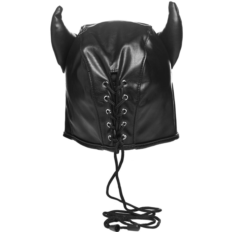 Obscuring the top half of your or their face, the extra soft Dungeon Demon features cutouts for your/their eyes and is couved to fit over the bridge of your nose. Just slip it over your/their head, customizing the fit using great looking corset style laces around back.